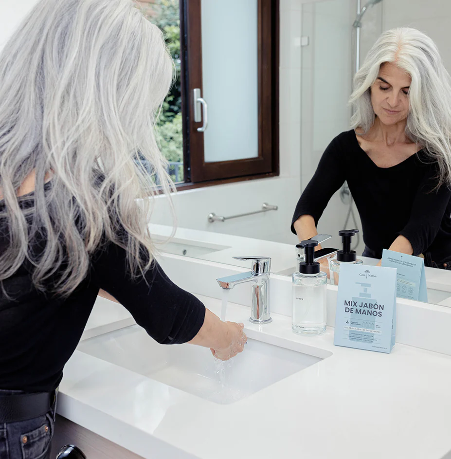 Casa Nativa Jabón de Manos en Espuma Mix 4 Tabletas Recarga ecológica de jabón en espuma en formato de tabletas ultraconcentradas. Cada pack incluye 4 tabletas solubles que se disuelven fácilmente en agua para preparar tu jabón en espuma favorito. Aromas incluidos en el mix: Mandarina Oriental Vainilla Polinésica Jardín Japonés Bosque Austral Cada tableta rinde aproximadamente 350 ml de jabón en espuma, ideal para dispensadores. Fórmula suave con la piel y práctica para el uso diario de toda la familia. Producto sustentable que reduce el uso de plásticos y transporte innecesario, cuidando el medioambiente. Mantén tus manos limpias, frescas y suaves con un aroma único en cada lavado.