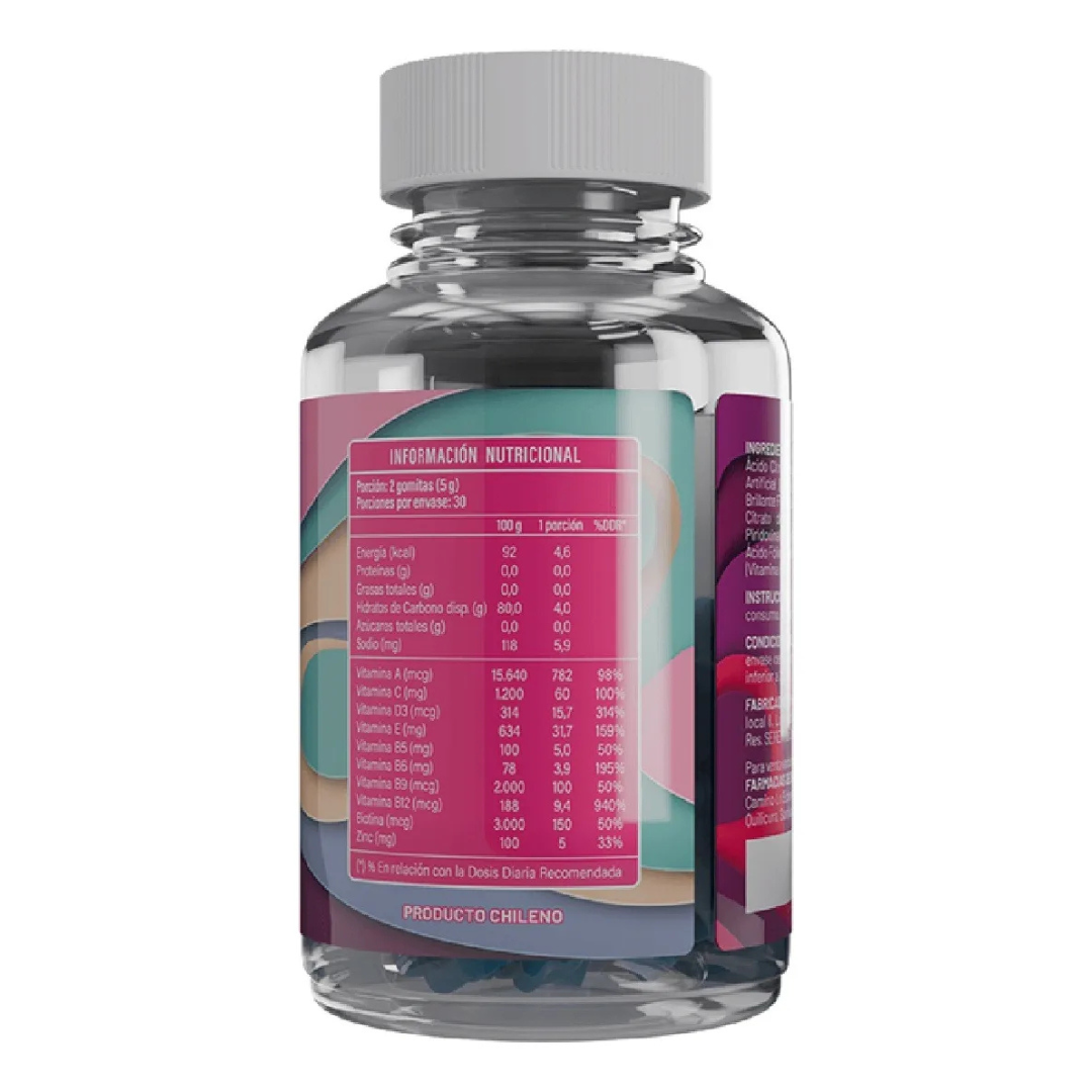 • Presentación: Frasco con 60 gomitas sabor frutos del bosque